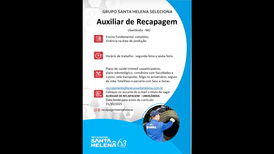 Estamos no mercado desde 1961, o Grupo Santa Helena utiliza toda sua experiência no melhor atendimento a seu cliente. Trabalhando em parceria com grandes e reconhecidas empresas nacionais e multinacionais, como Pirelli, Prometeon, Shell e Vipal Borrachas, a empresa conquistou uma posição de destaque no mercado de pneus, recapagens e postos de combustível.